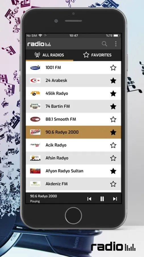 You can browse through carefully selected radios in the category you want from Arabeskt to classical music, jazz to sports news; If you wish, you can easily access the desired radio by adding your name to your favorites.