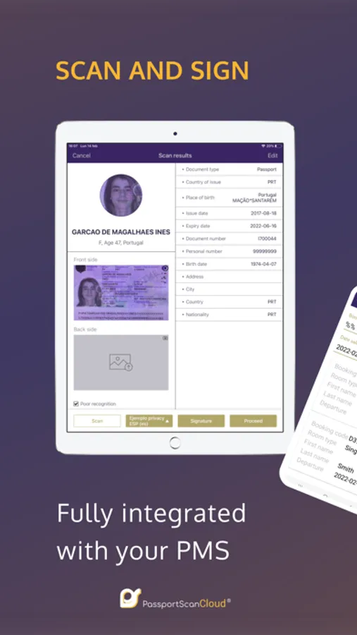 PassportscanCloud recognizes over 8000 kinds of identity documents in a few seconds. Guests can sign the necessary privacy documents in the desired languages.