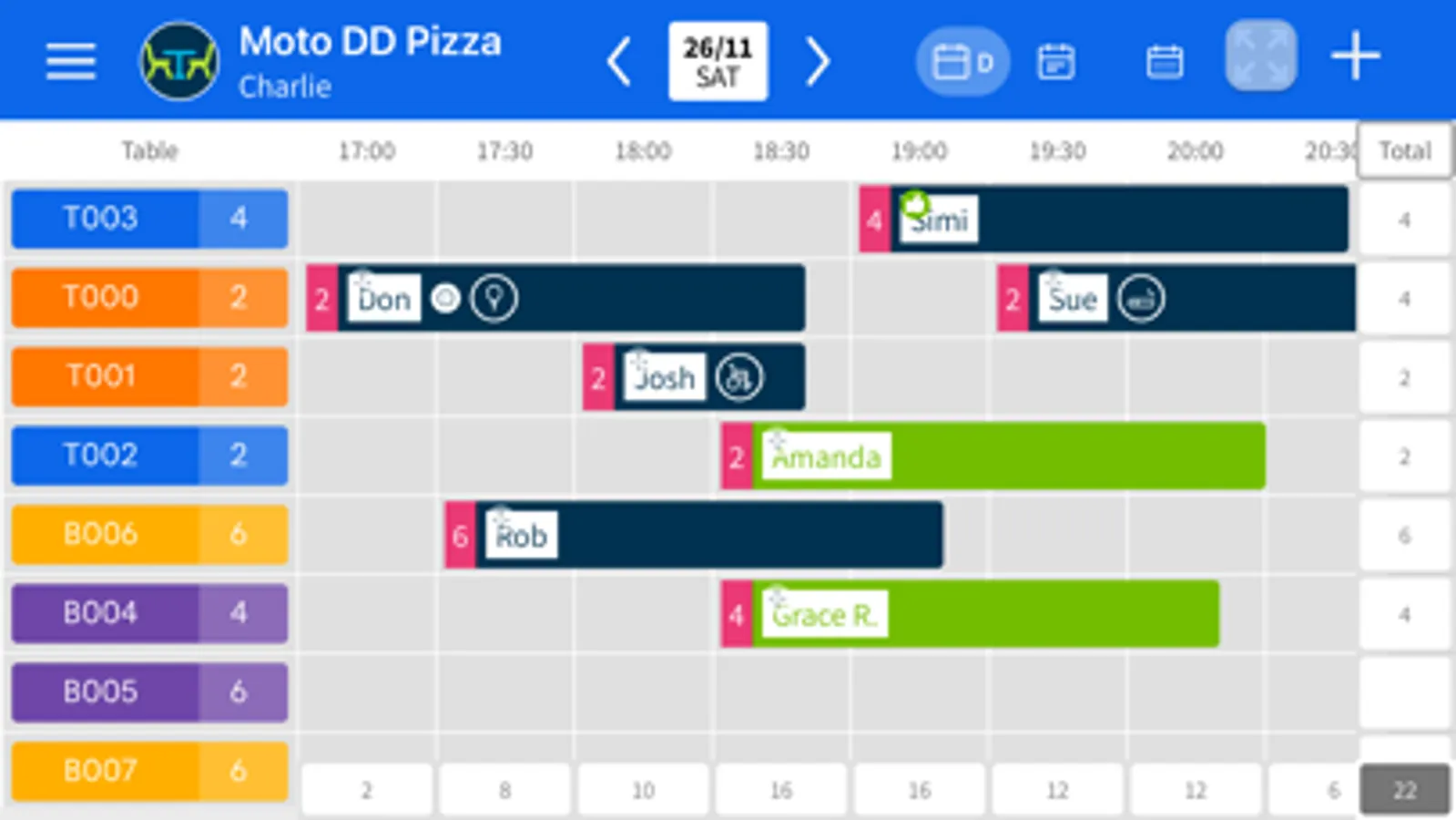 With a smart algorithm in the cloud, and in one glance, the Planner will show you all reservations, on which tables, on which hour, and if any table is free...