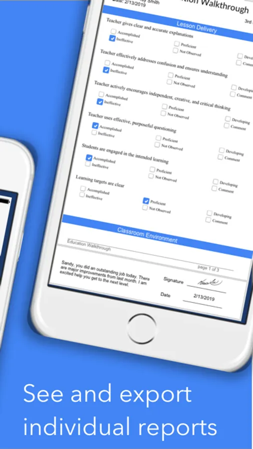 Classroom walkthroughs should be easy, efficient, and effective. Education Walkthrough enables you to create custom walkthrough templates, complete a 10-min observation, and share immediate feedback with teachers.