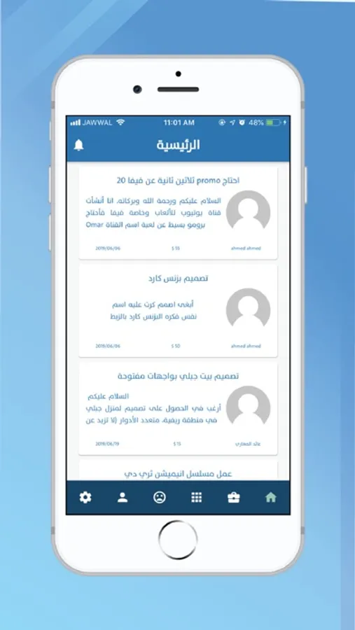 تطبيق يوفر لك طلب خدمات ضمن العديد من التصنيفات التي تريدها بأمان عالي ، ويدعم التحدث المباشر مع مقدم الخدمة وارسال الملفات والصور والموقع الجغرافي.