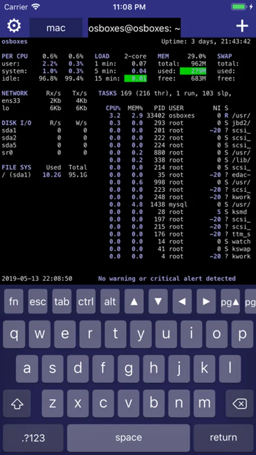 Access multiple SSH server, with full support of "xterm-256color" emulation.