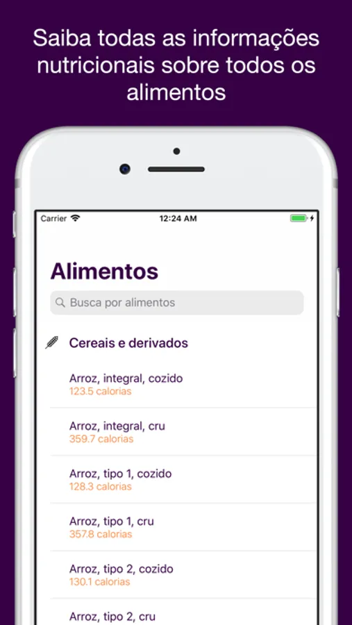 ◆ Lista com todos os alimentos disponíveis da tabela Nutricional dos Alimentos do IBGE