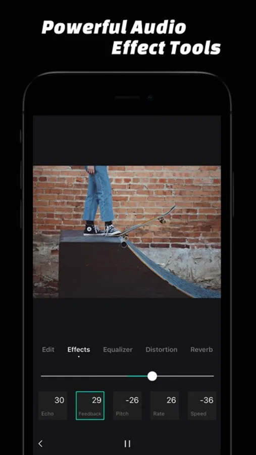 · Music Edit Tools: Trim, Fade-In & Fade-Out, Echo, Feedback, Pitch, Rate, Speed, Equalizer, Distortion, Reverb.