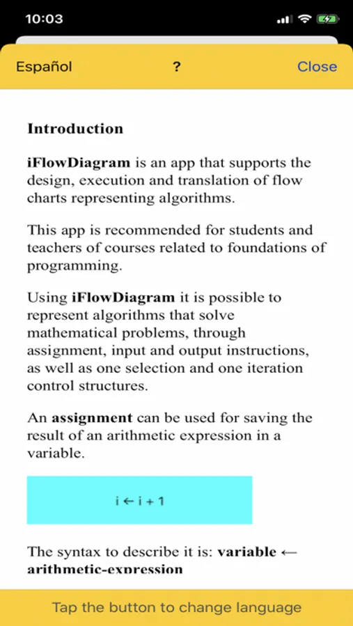 iFlowDiagram is an app that supports the design, execution and translation of flow charts representing algorithms.