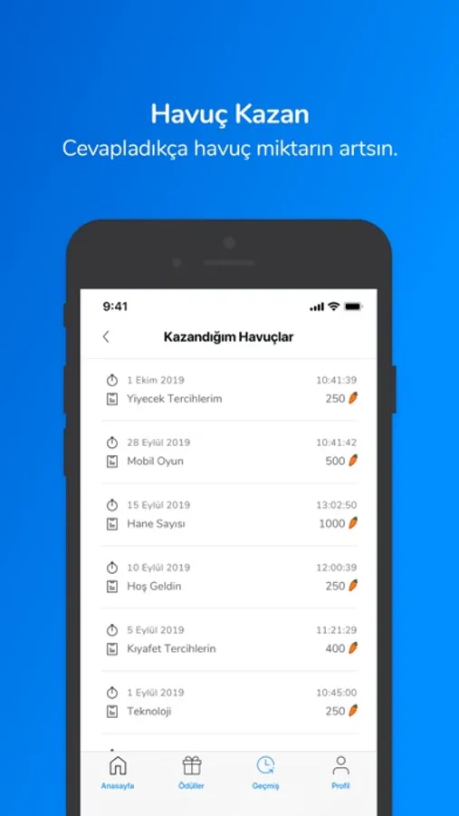 Her katıldığınız anket için hesabınızda havuç puan birikecek. Bu puanları TL'ye çevirip hesabınıza banka havalesi yoluyla nakit olarak aktarabileceksiniz. Uygulamayı hemen indirin, puanları toplamaya başlayın.
