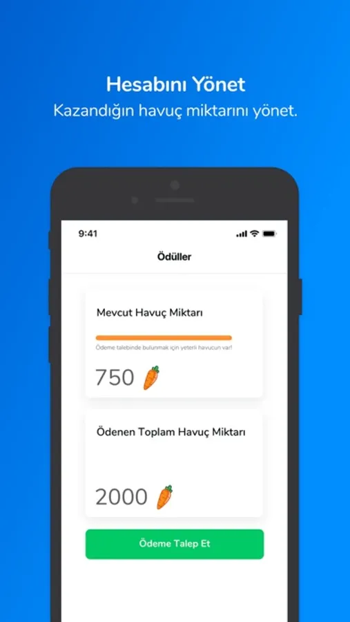 * Kazandığınız havuç miktarını uygulama üzerinden yönetebileceksiniz.