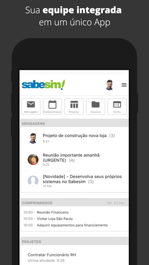 O Sabesim é uma plataforma completa para controle de tarefas, gestão de projetos, comunicação interna, gestão de pessoas e produtividade.