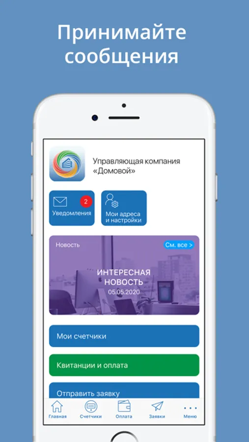 Отправляйте заявки с фотографиями, показания счетчиков, получайте важную информацию от управляющей компании!