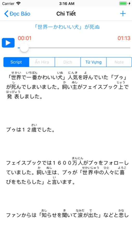 + Hỗ trợ đọc báo từ dễ đến khó (kèm audio, script, từ vựng...)