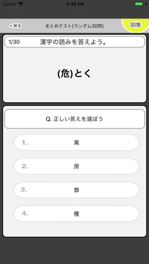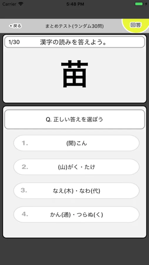 ・読み、書き共に最後のまとめテストではランダムで全範囲から問題が出題されます。
