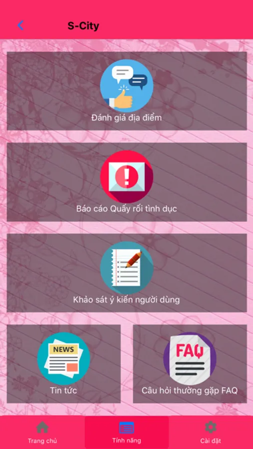 S-City là ứng dụng được thiết kế chạy trên các điện thoại thông minh nhằm tạo ra một không gian mạng xã hội cho những người đến, sống và làm việc tại các thành phố, đặc biệt là phụ nữ và trẻ em gái, phản ánh mối quan tâm của họ về chất lượng các dịch vụ công, điều kiện cơ sở vật chất, tình trạng quấy rối tại các địa điểm trong thành phố, thông qua đó tạo cơ sở thu thập thông tin để vận động nâng cao chất lượng dịch vụ công.