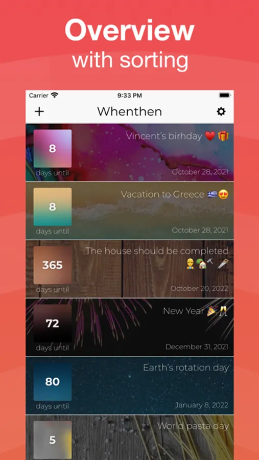 Choose from millions of background images or from your own photos and decorate the event with a color.