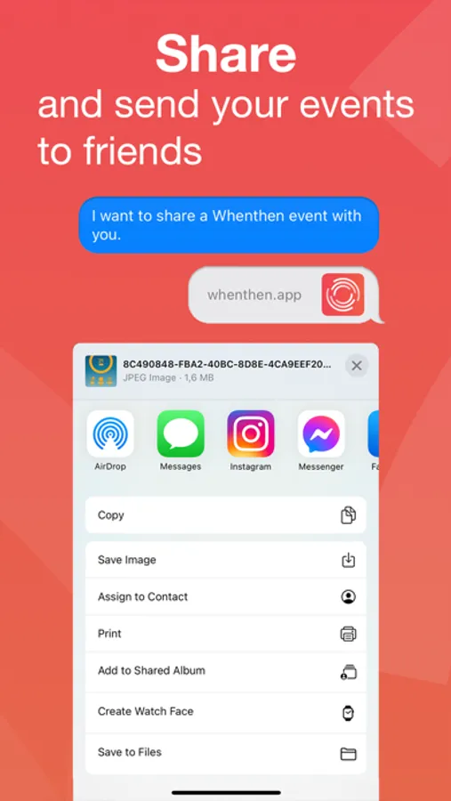 Send the event to friends and family or share it in your favourite social media app (tiktok, snapchat, instagram, facebook, twitter, messages, etc).