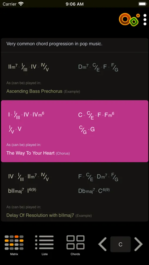 With the new unique and innovative matrix, it is easy to find, learn, understand, compare and modify the most common and important chord progressions. But you can also just take a progression from the list and learn it in several ways and keys.