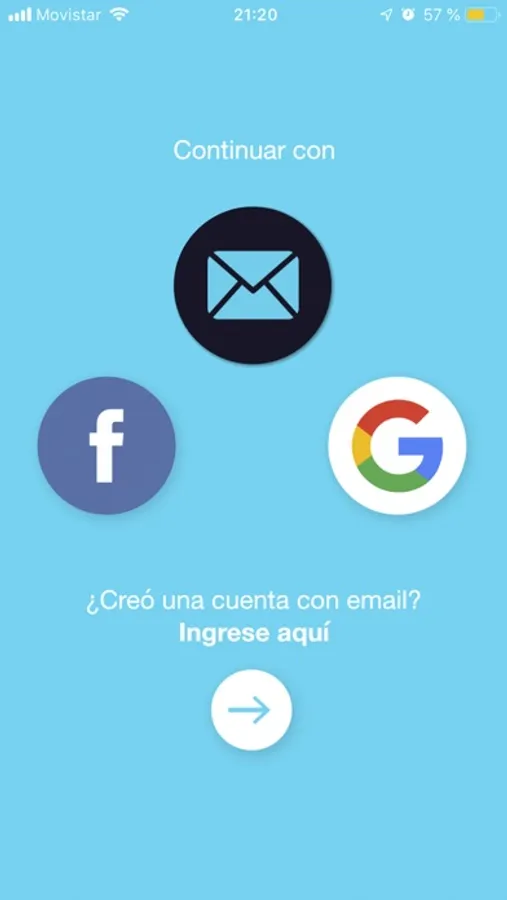 Hay 3 opciones para que crees una cuenta: ingreso mediante Facebook, ingreso mediante Google o por medio de un email y contraseña.