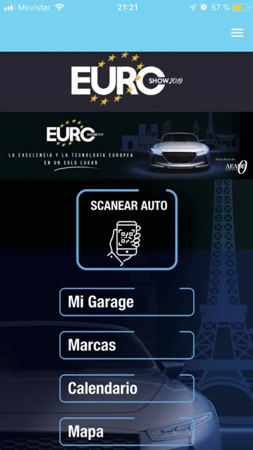 Dentro de la interface principal, y en el menú hamburguesa, la opción "Scanear Auto" permite leer dichos códigos QR y te presentará información técnica y comercial, el mapa del recinto ferial y un enlace hacia la web local del fabricante.