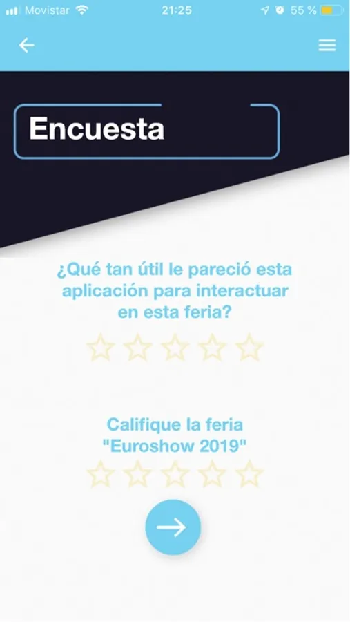 Dos preguntas con respuesta del 1 al 5 en forma de estrellas te permiten evaluar la feria.
