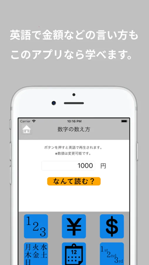 更に英語での数字や金額などの言い方もこのアプリで学べます。