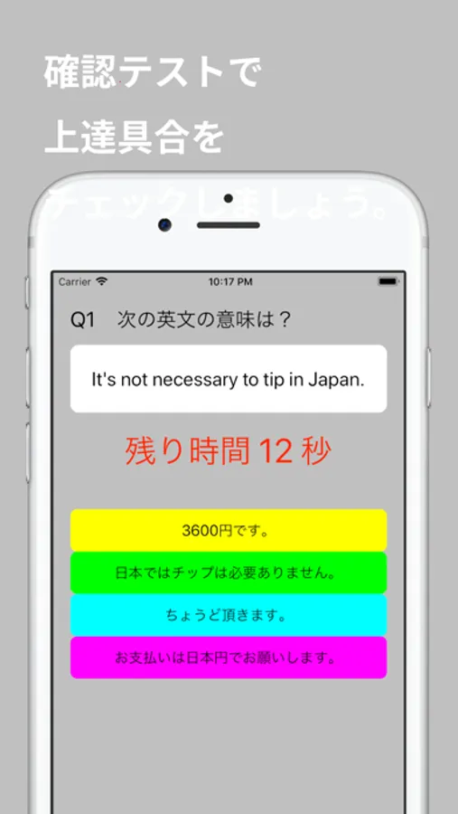 また各カテゴリーごとに確認テストで上達具合をチェックできます。