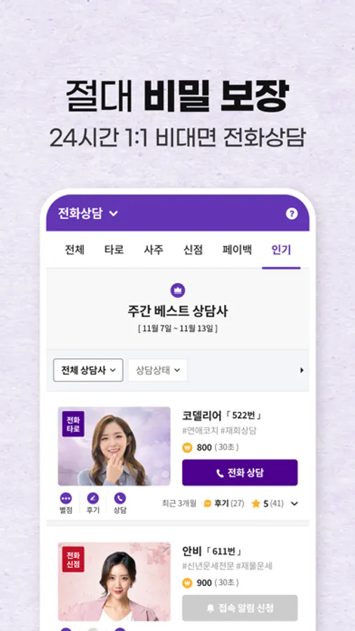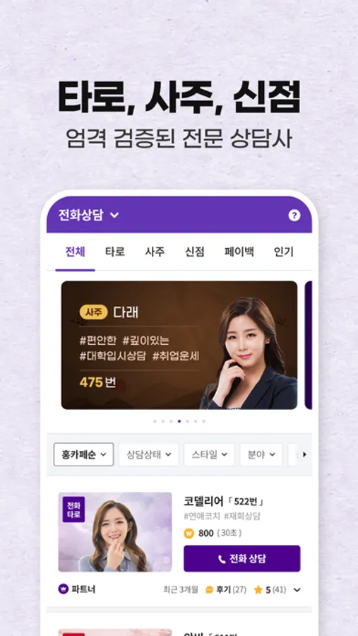 - 타로, 신점, 사주로 고민을 해결해보세요.