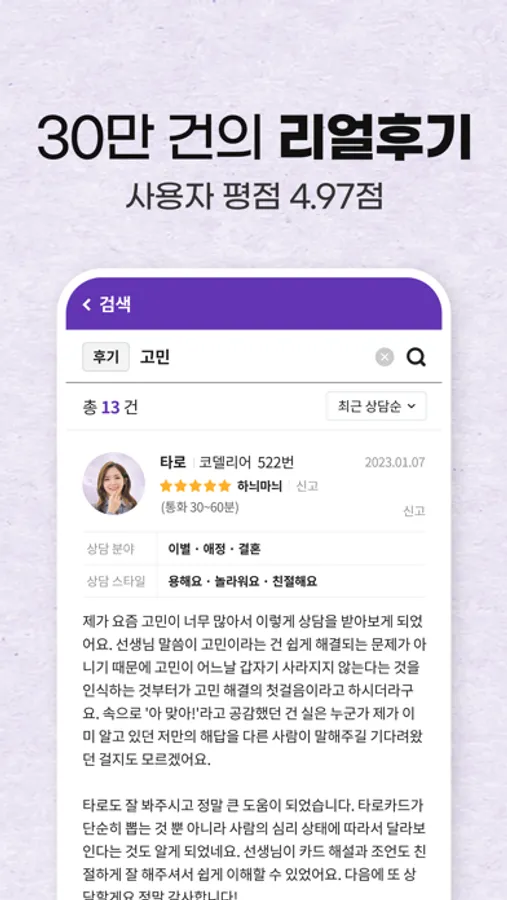 ▶ 진솔한 후기로 나에게 맞는 상담사 찾기
