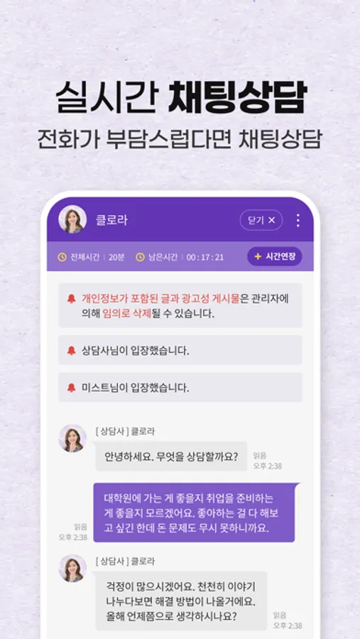 - 내 마음을 털어내고 고민을 상담해보세요.