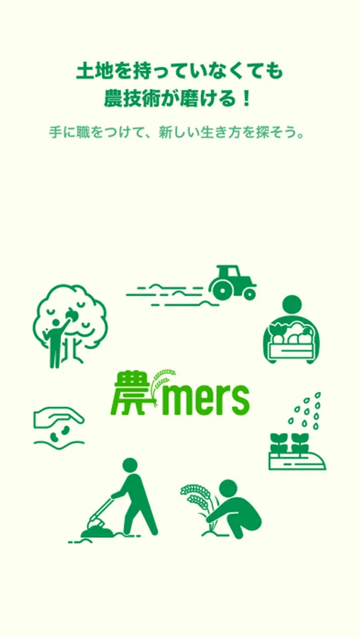 「農mers(ノウマーズ)」は、メッセージのやりとりを通じて、農業を始める人と農家をつなぐスマホアプリです。農mersのご利用は無料、やりとりもチャットで簡単に行うことができます。