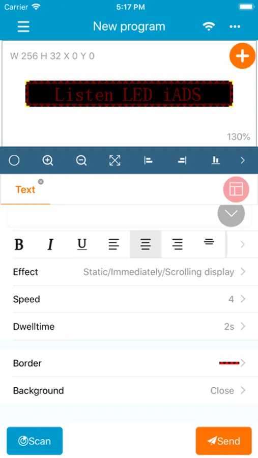 LED屏管家为上海灵信视觉技术股份有限公司开发的一款移动APP,用于对LED显示屏进行控制,主要作用为编辑节目内容并发送至LED屏幕上进行显示,支持字幕、数字时钟、流水边框、亮度调节等功能。应用仅支持上海灵信视觉6代系列WIFI控制卡。