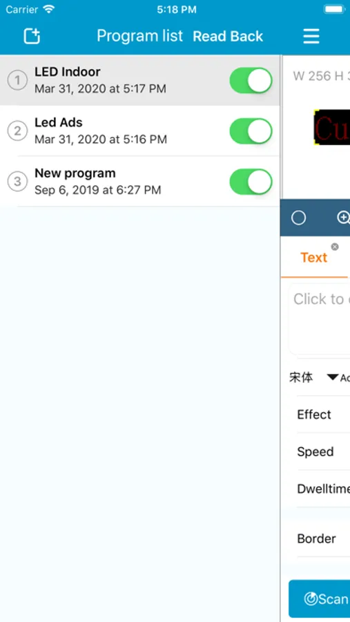 - 添加节目:用户可添加多个节目,每个节目可添加最多4个区域,可同时发送多个节目。