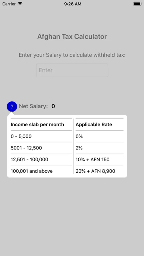 Afghan Taxes Calculator is a very simple app that works according to Afghanistan Tax policy.