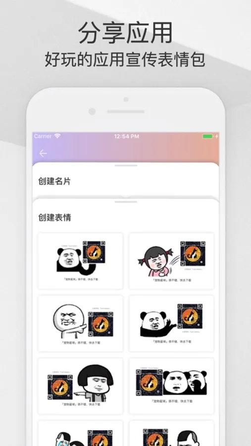 是时候使用全新的宣传手段了,有了Card Maker,可以生成好玩好看的表情包,用户只要扫一扫表情包二维码,就可以直接跳转下载你的应用,方便又好玩,还不会长篇大论的影响别人的阅读感受,就是这么Cool~