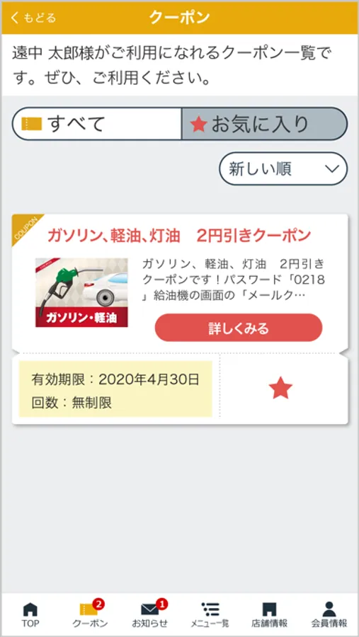 また、決められたスタンプ数を貯めるとお得なクーポンと引き換えができます。