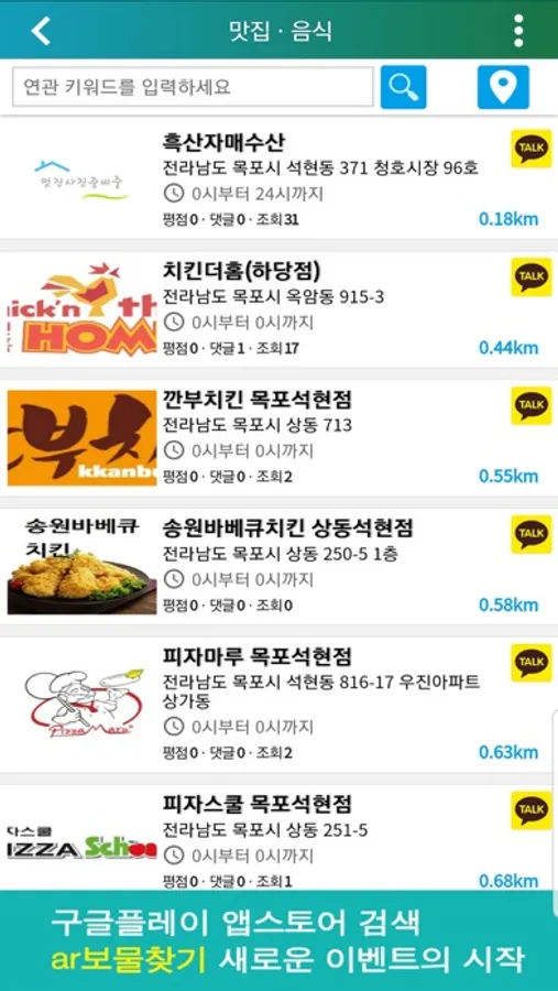 * 각종이벤트 및 위치기반 보물찾기 실시간 제공
