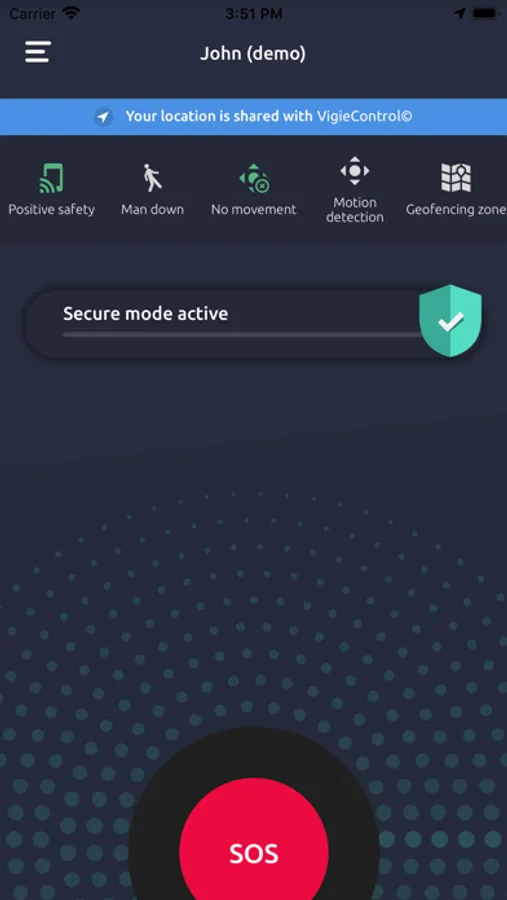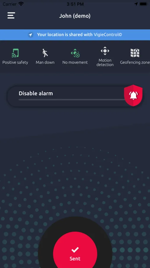 Once the alarm is triggered, the alert is transmit via push notification, email or SMS to the security officer.
