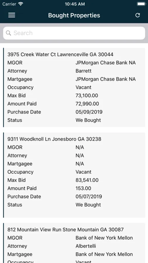The Bidding app enables the Acquisitions team to bid on properties at auction. The Bidding team can access details and track properties (at auction).