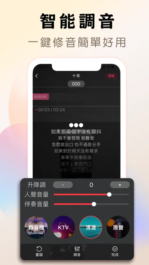 「專業音效」:實時音效,可自定專業調音,即刻讓你擁有一個錄音棚
