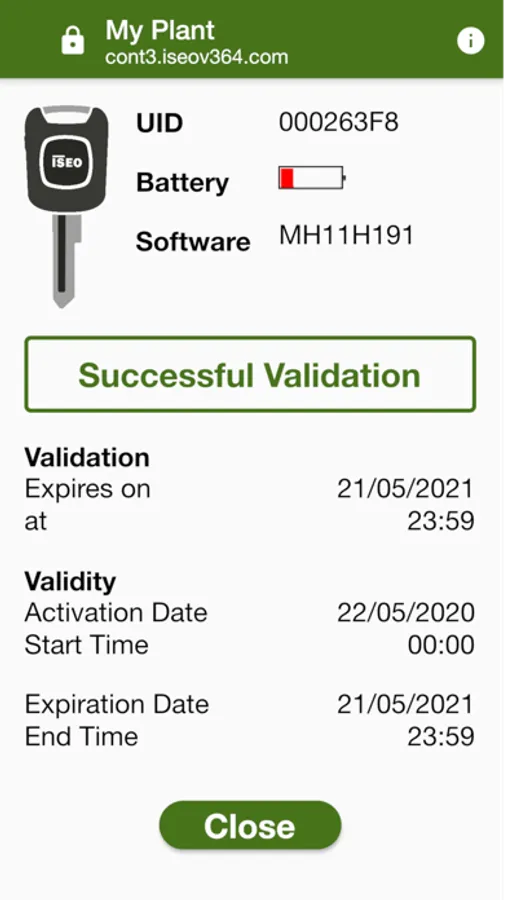 The ISEO F9000 ON app programs and validates the F9000 ON User keys from ISEO.