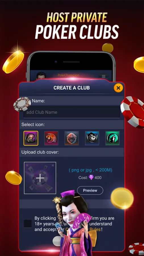 PokerBROS allows you to design your own table and personalize your appearance. Engage with friends in chat or with avatar emotes. Design your Club’s events and manage poker tournaments, all with a few taps. Invite friends to your private Club, play with who you want, how you want!