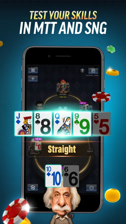 Play poker with friends online anytime and anywhere you like. PokerBROS is a poker app designed for all levels of players, from beginners in practice mode to experts taking on tournament mode. Multi Table Tournaments (MTTs) have potentially thousands of players, so you can play for hours. Win the poker tournaments to earn bragging rights - there can only be one winner amongst thousands! Buy in and play until you’re out of chips. Sit & Gos (SNGs) offer quicker games with 6 or 9 people at a table. PokerBROS suits any player who wants to practice, challenge friends or find a casual game of poker. Play with your friends and become part of the world poker community.