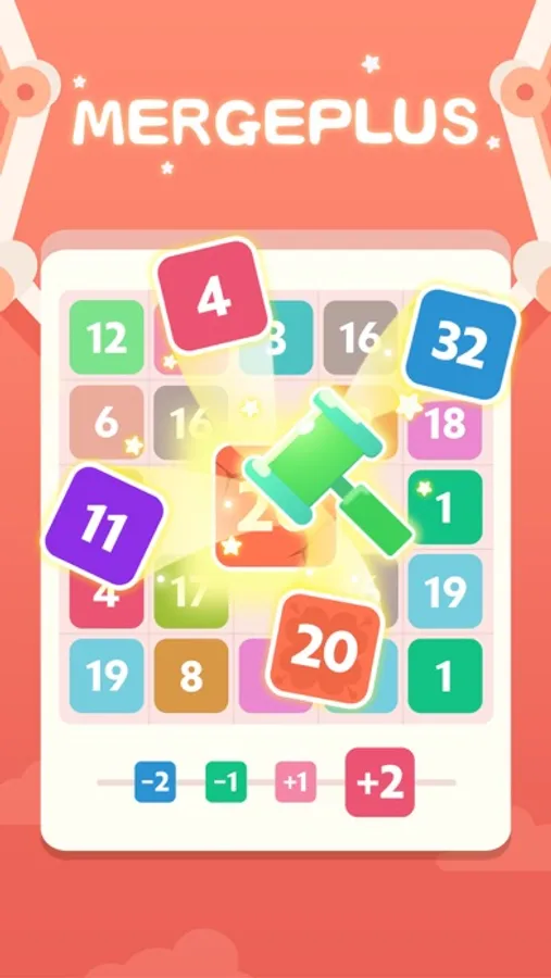Before the starting, you get numbers and cards.Drag the cards to the checkerboard,then you will get the sum of the number and the card. Every set of 3(or>3)adjacent cards can be merged and change into bigger numbers and every time you merge 3 sets of numbers,you get one new card.