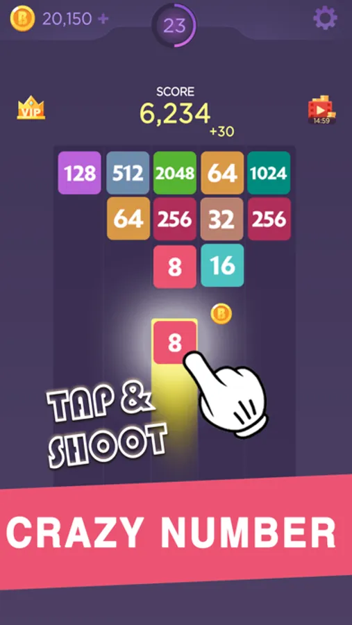 This is a game of merging numbers.Merged numbers will disappear and bigger numbers appear. Let’s go and explore the game!