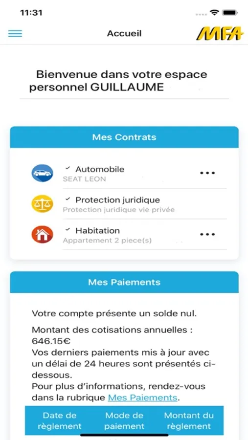 Mon appli MFA est un espace d’interactions et de consultation réservé aux sociétaires de la MFA.