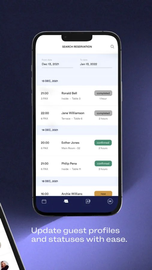 - Quickly add, view, seat and update reservations from our intuitive dashboard