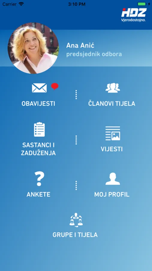 Dobrodošli u mobilnu aplikaciju Hrvatske demokratske zajednice. Aplikacija je namijenjena članovima stranke. U aplikaciji možete pristupiti raznim obavijestima, sudjelovati u anketama, primati pozive na sastanke i zadatke i pristupati tekućim vijestima Hrvatske demokratske zajednice.