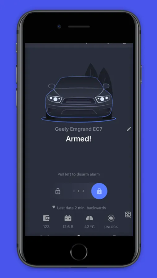 Signals on the smartphone from car alarms and sensors (shock, tilt), as well as alerts about engine start, battery status, exit from the geofence;