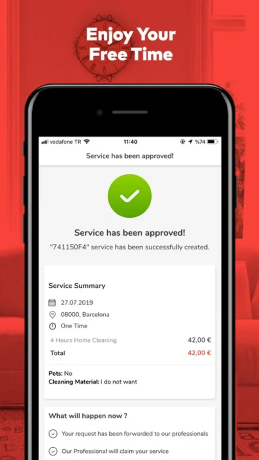 • Create an order for a professional cleaning and/or ironing service with our secure payment system.