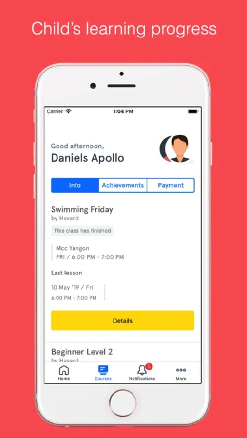 iii) Notifications: Receive important updates such as upcoming assessments and lesson changes.
