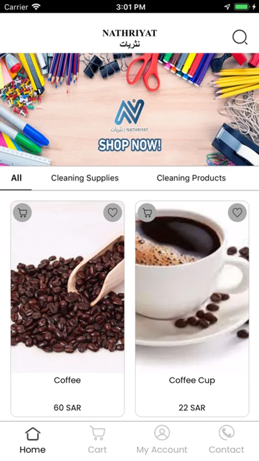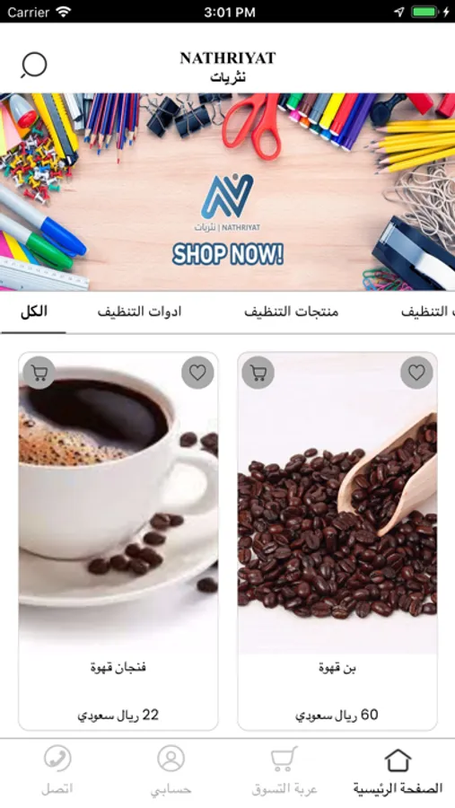 Nathriyat is a new service that enables you to make purchases stationary products via your mobile phone. Simply, download the App and you will immediately be able to see the stationary products.
