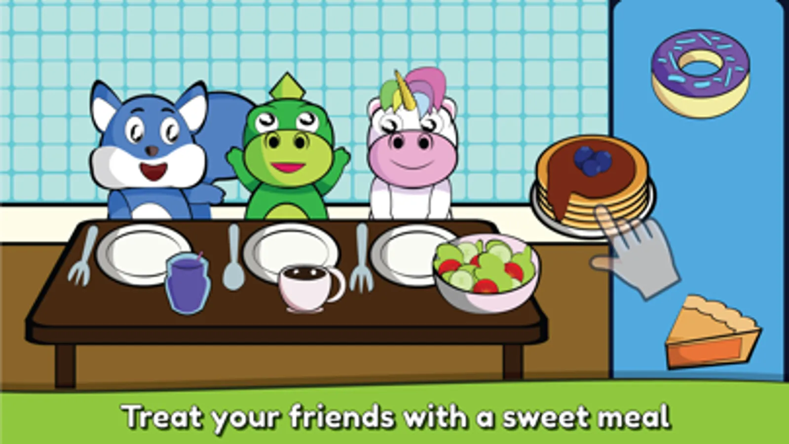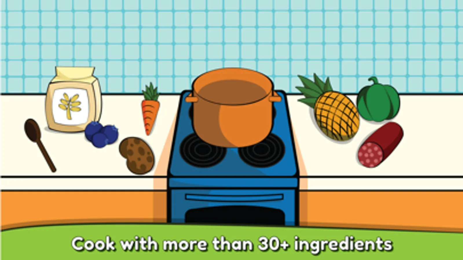 The game uses shapes, colors and counting to solve easy visual problems. Also, ingredients are fully voiced to help your kid learn new words to its vocabulary.